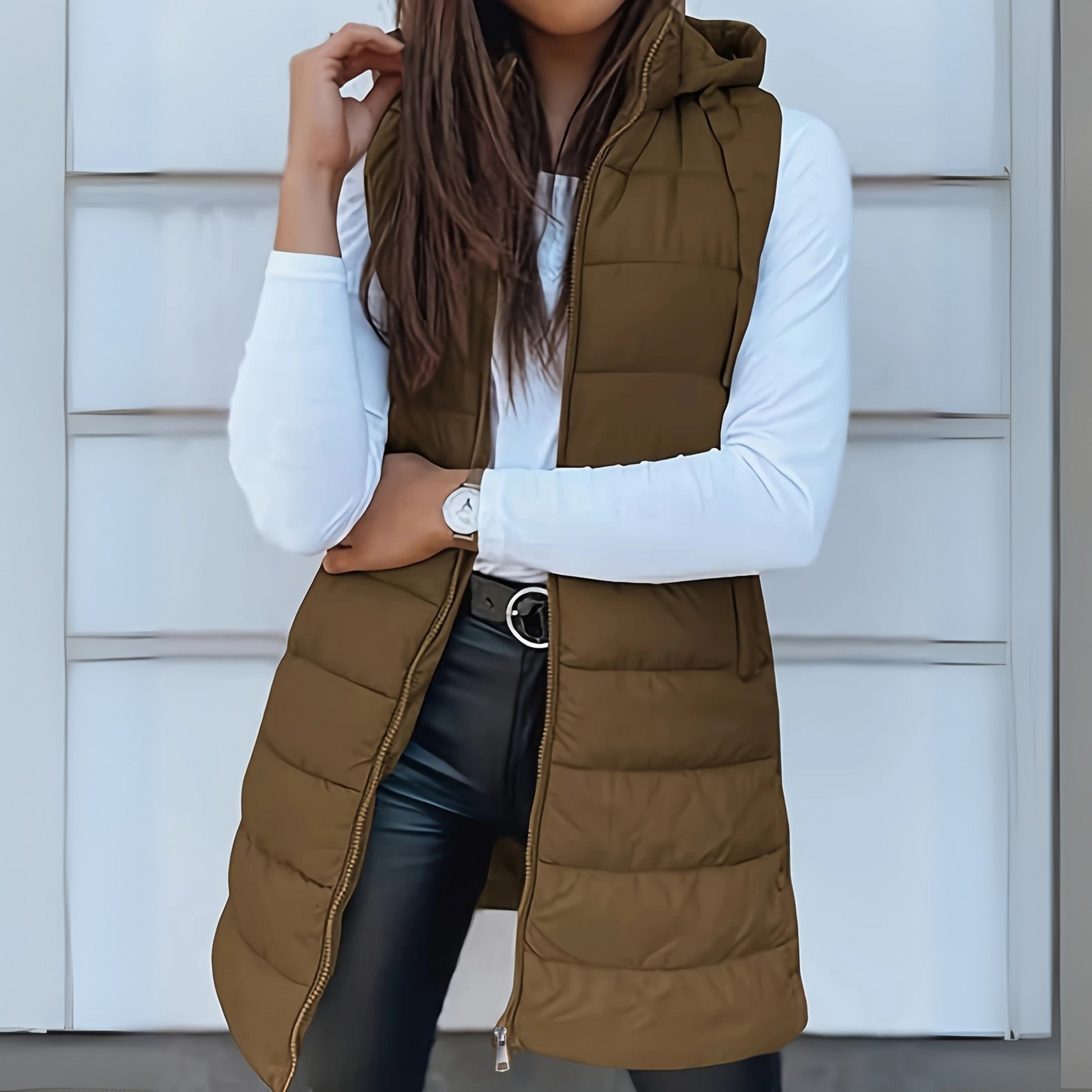 Modische Steppweste mit Kapuze – leicht, bequem und ideal für sportliche und urbane Looks in der Übergangszeit.