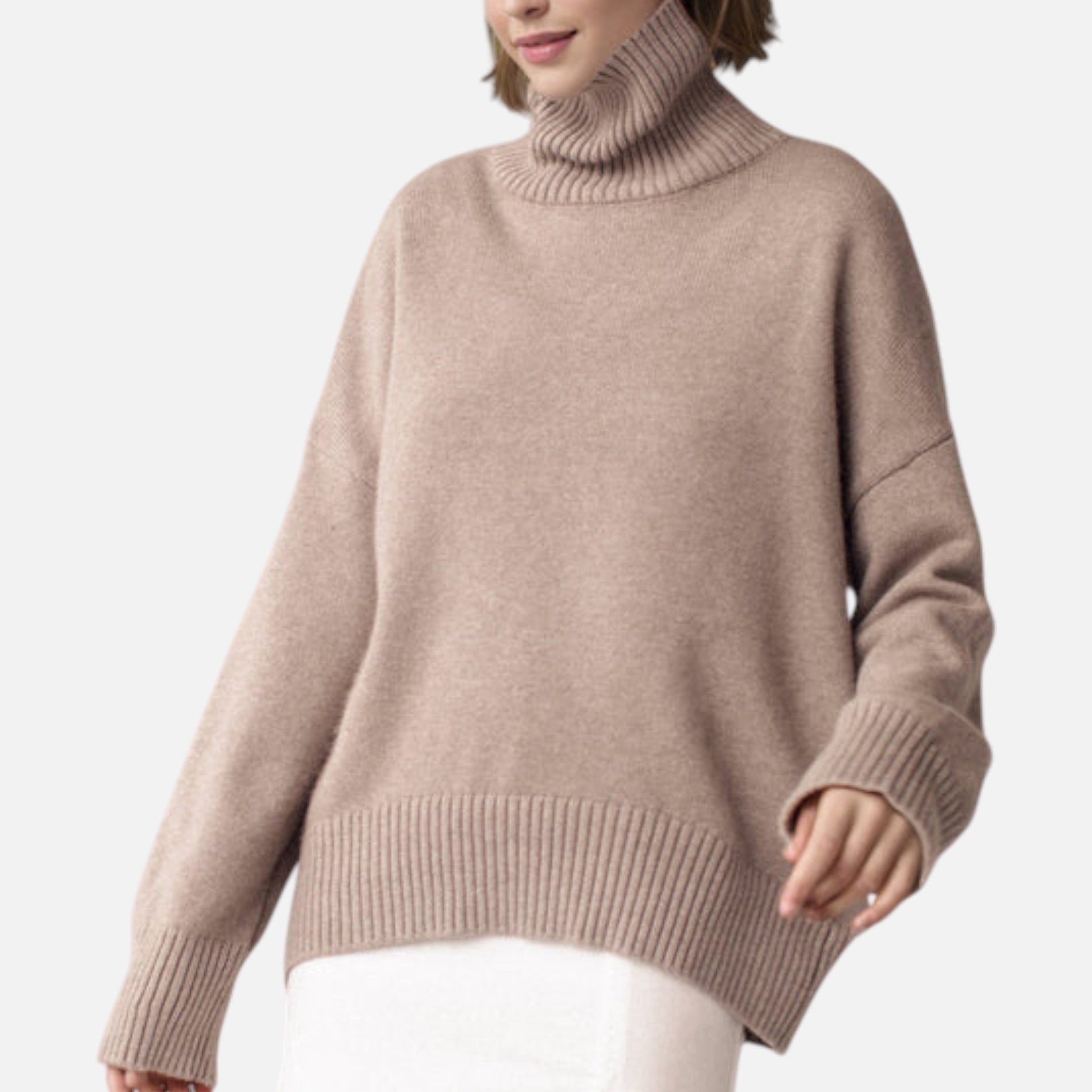 Elfrieda | Damen Oversized Rollkragenpullover – Weicher, Langer Strickpullover im Modernen Loose-Fit Look für Herbst & Winter