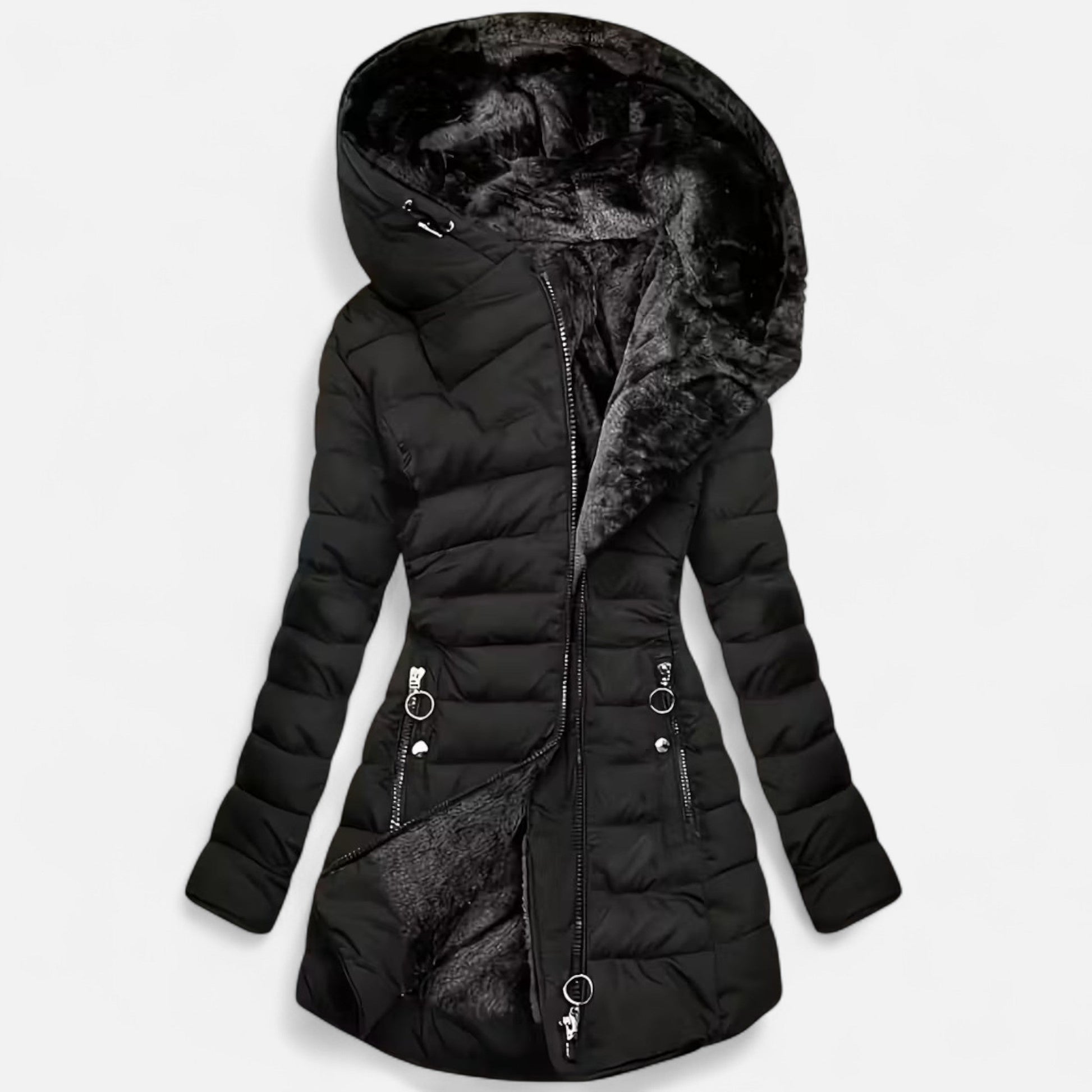 Elegant, warm und vielseitig – die Diana Kapuzenjacke vereint modisches Design mit funktionaler Wärme für kühle Tage.