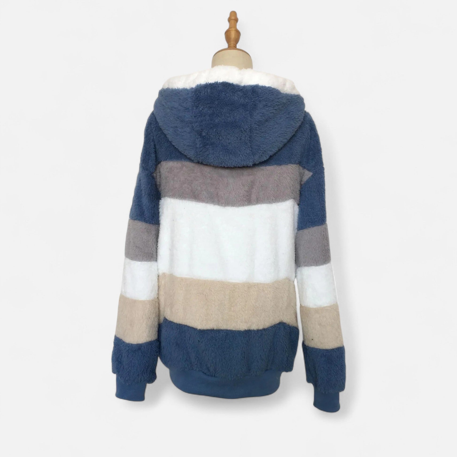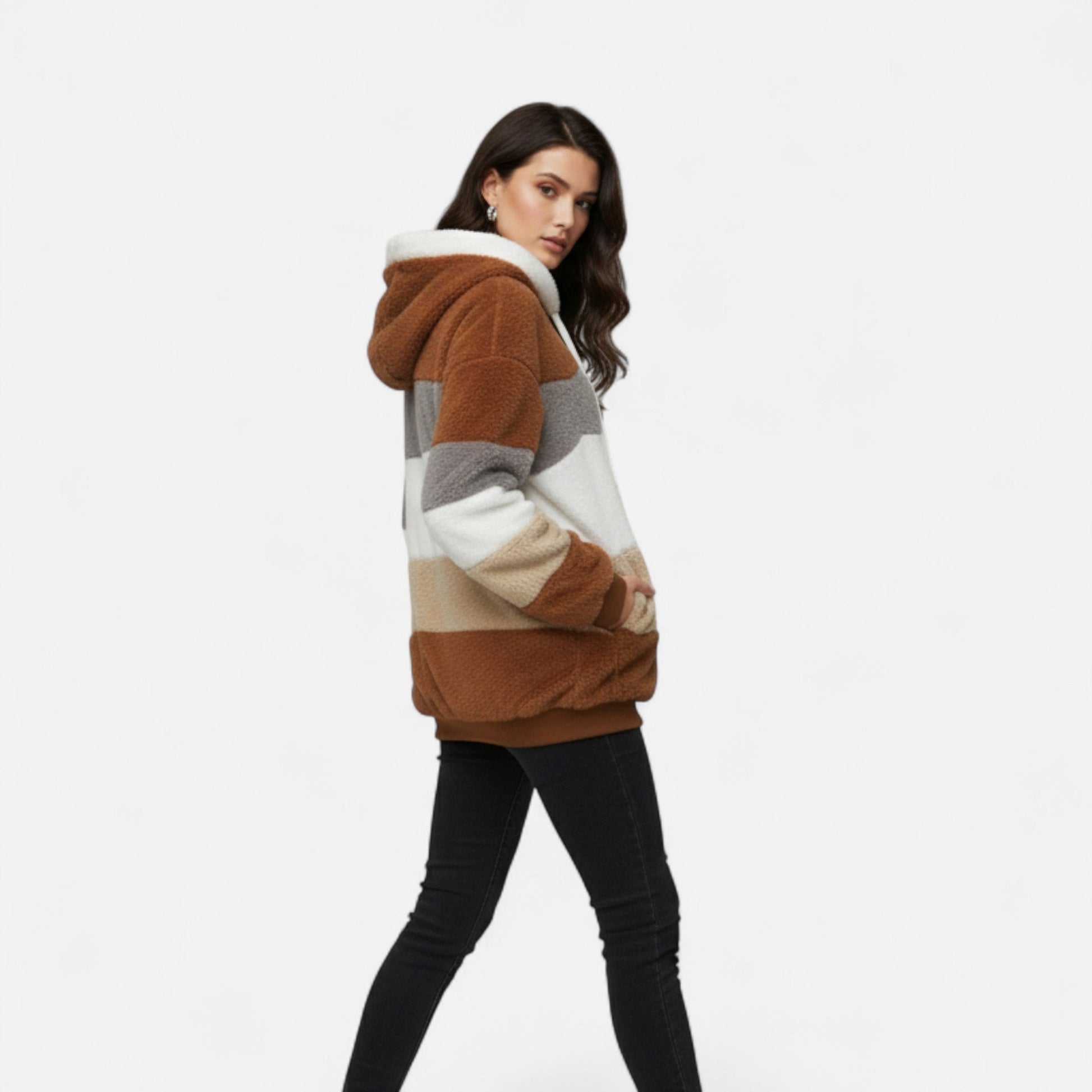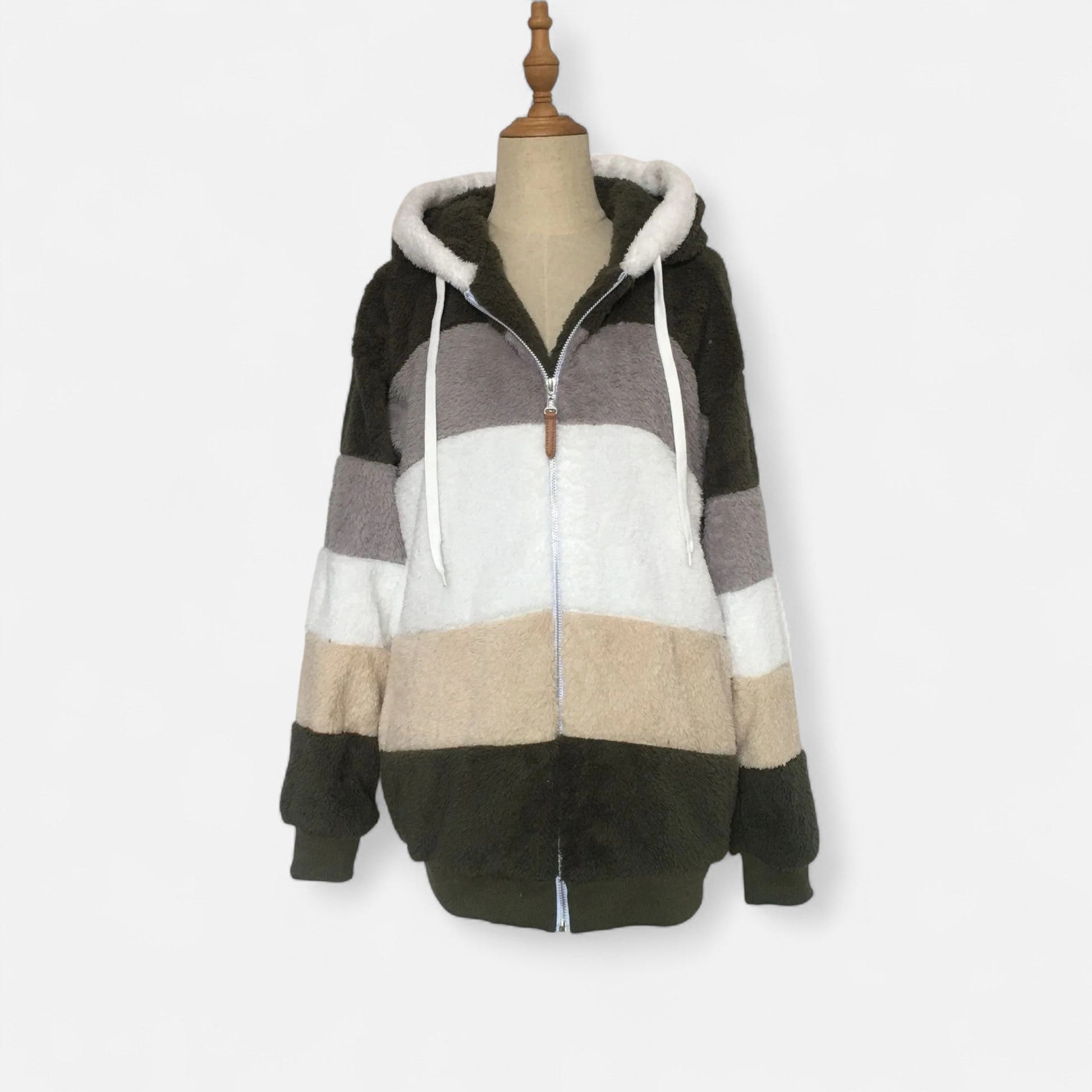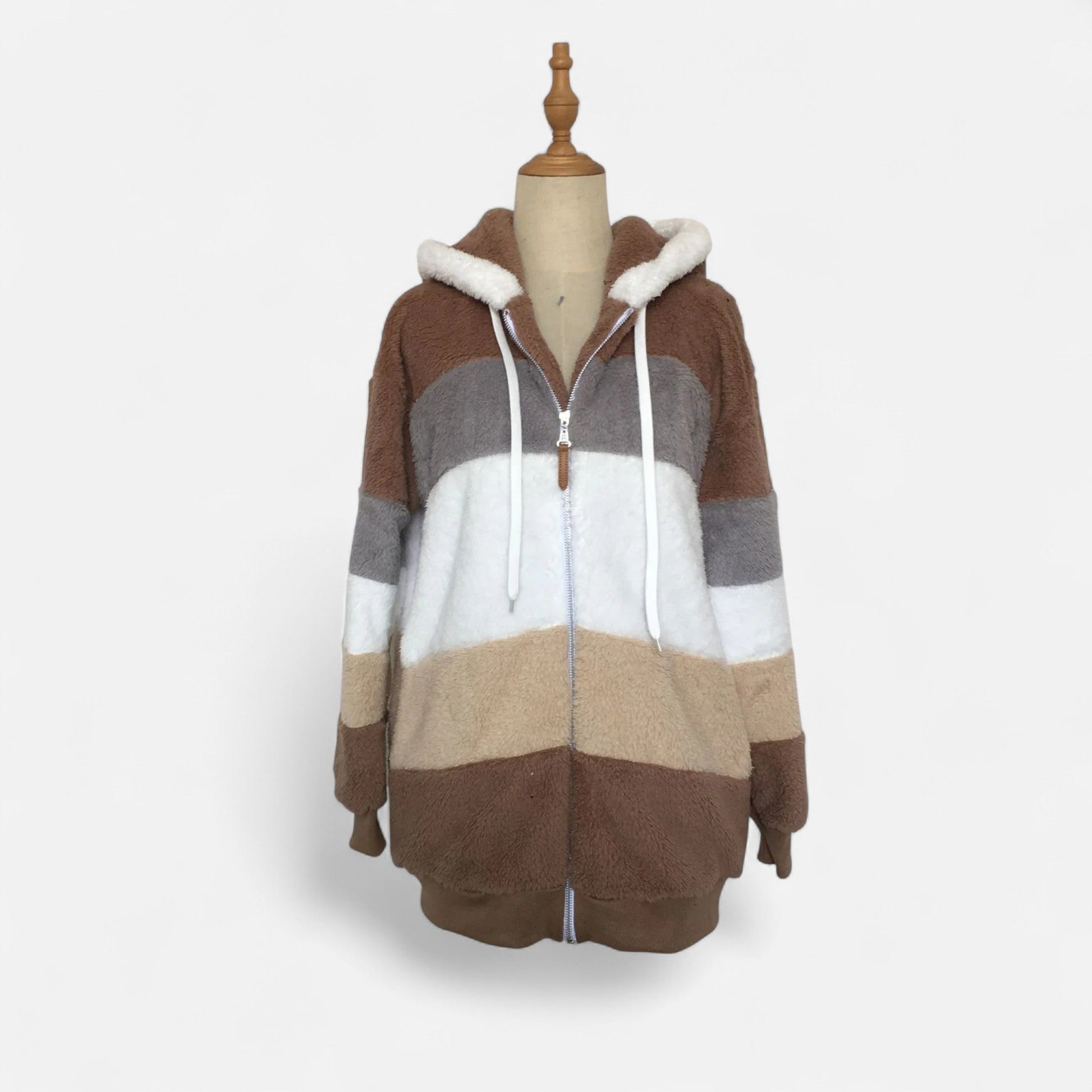Erika | Damen Oversized Jacke mit Kapuze – Gestreifte Soft-Jacke mit Reißverschluss & Kordelzug für Herbst & Winter Eleganz