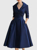 – Design: A-Linie mit Wickelkragen und 3/4-Ärmeln