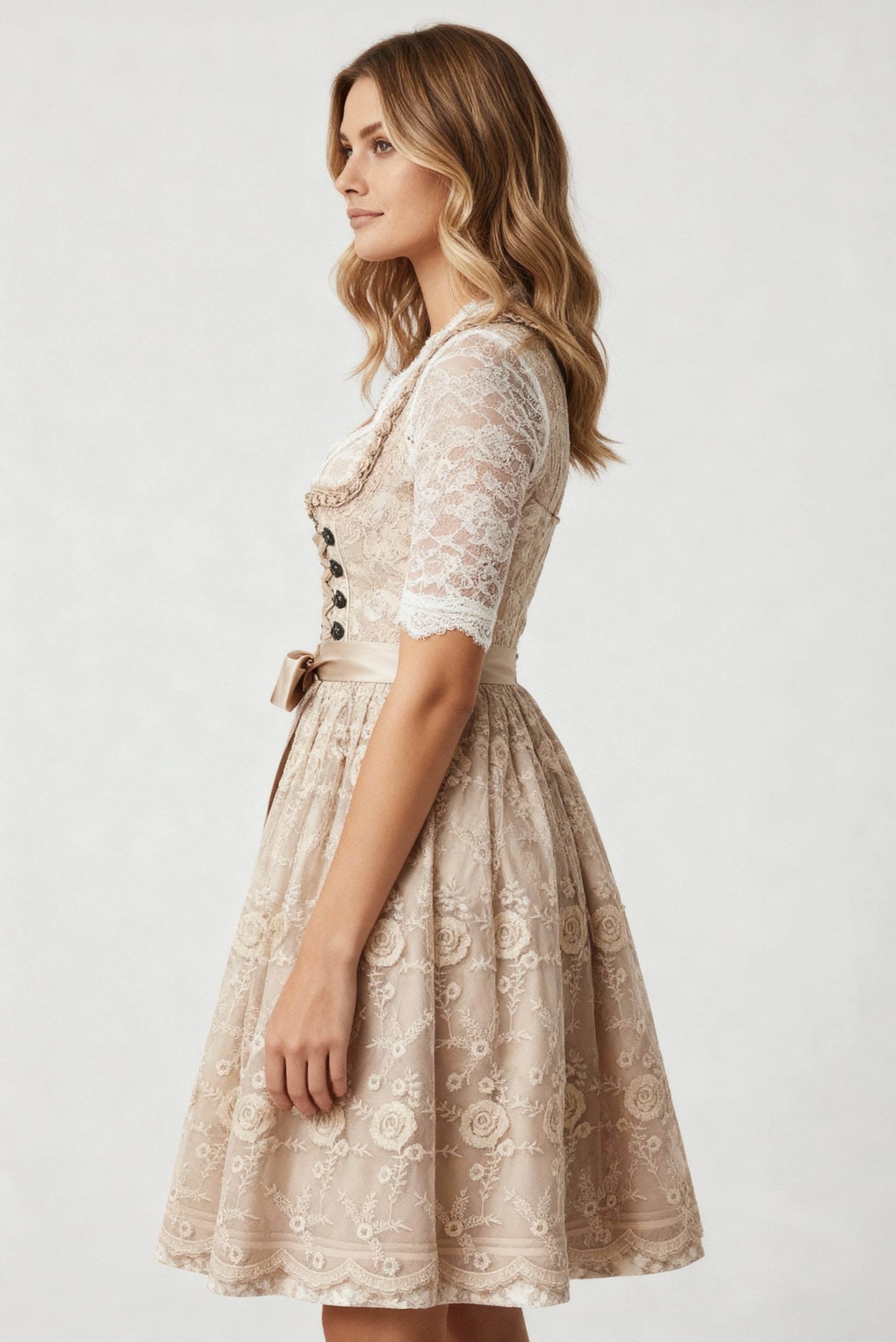 Dirndl Damen | Traditionelles Kleid mit Schnürmieder & Spitzenbluse