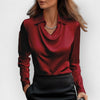 Satinbluse Damen | elegante Bluse mit fließendem Wasserfallkragen