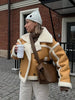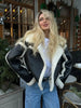 Leitgard | Damen kurze Oversized Winterjacke mit Doppelreiher, großem Kragen & Kontrastbesatz